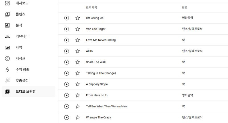 유튜브에서 공식 제공하는 효과음 무료 사이트로, 유튜브 창작자들을 위한 저작권 걱정 없는 효과음을 제공합니다. 유튜브 스튜디오와 연동되어 있어 효과음 다운로드 후 바로 영상에 적용할 수 있어서 편리합니다.