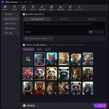 - 400개 이상 음성 라이브러리 제공 : 다양한 목소리로 ai 동물 캐릭터 연출