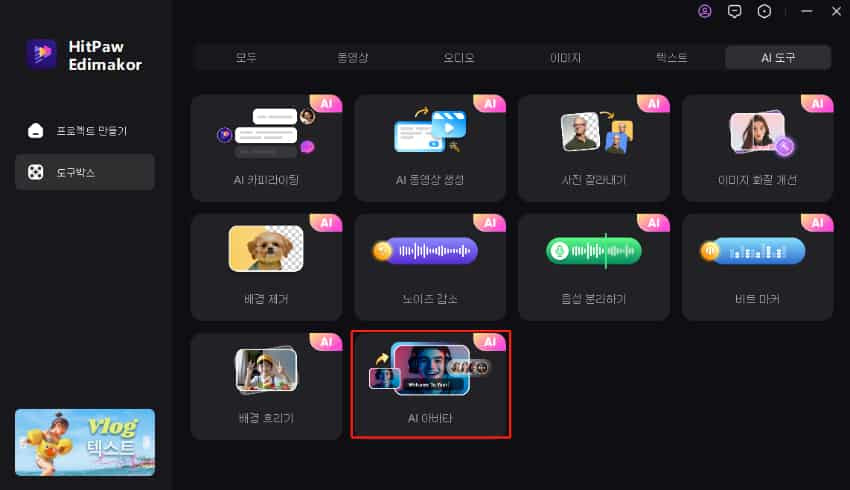 3단계: 두번째 방법은 메인 화면에서 ‘도구박스’를 클릭하고 ‘AI아바타’를 클릭하는 방법인데요. 두가지 모두 동일한 방법이니 편한 방법을 선택해주세요.